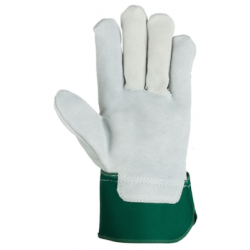 Descripción: GUANTE CUERO Y LONA - C/REFZ CALIDAD EXTRA Guante de corte americano en Serraje Crupón. Refuerzo en uñeros y nudillos de Serraje Gris y en color Verde en Palma, Pulgar e Indice. Ajustes elásticos exteriores e interiores y manguito de seguridad de lona con soporte Guantes flexibles y duraderos, protección a la abrasión,...