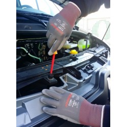 Descripción: Guante de nylon sin costuras con recubrimiento total de nitrilo. Puño elástico Acabado liso brillante. Excelente agarre en seco Aptos para trabajos de manipulación de piezas con aceite Alta resistencia a al abrasión.